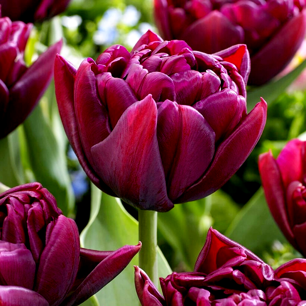 Tulips are iconic spring-blooming bulbs renowned for their elegant cup-shaped flowers and wide array of colors and forms. These bulbs produce single stems with distinctive flowers that can be found in virtually every color except true blue, including solid hues, bi-colors, and striking patterns with stripes, flames, or picotee edges.