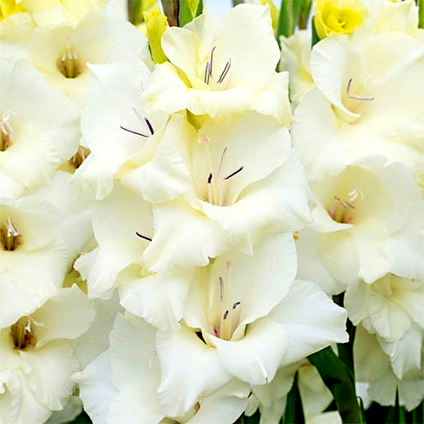 Native primarily to South Africa, with some species from the Mediterranean region, gladioli have become popular garden plants worldwide. They bloom in summer and are prized as cut flowers due to their impressive height and long-lasting blooms. The plants prefer full sun and well-drained soil, and in colder climates, the corms must be lifted and stored indoors during winter. Gladioli are excellent for creating dramatic vertical elements in flower gardens and are commonly grown in rows for cutting. There are over 260 species and countless cultivars, ranging from miniature varieties to giant exhibition types.
