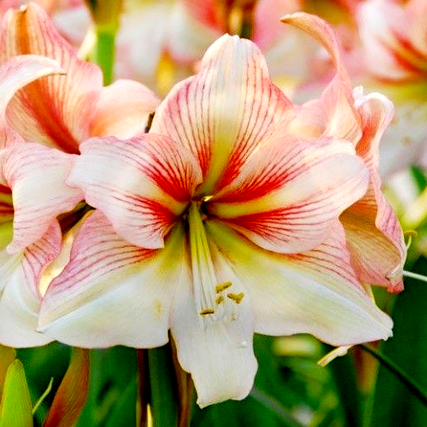 Amaryllis is a striking bulbous flowering plant best known for its large, trumpet-shaped blooms that make it a popular choice for indoor flowering during winter months. The most commonly cultivated species, Hippeastrum (often called amaryllis in horticulture), produces dramatic flowers that can reach 6-8 inches across, typically in shades of red, pink, white, orange, or striped combinations.