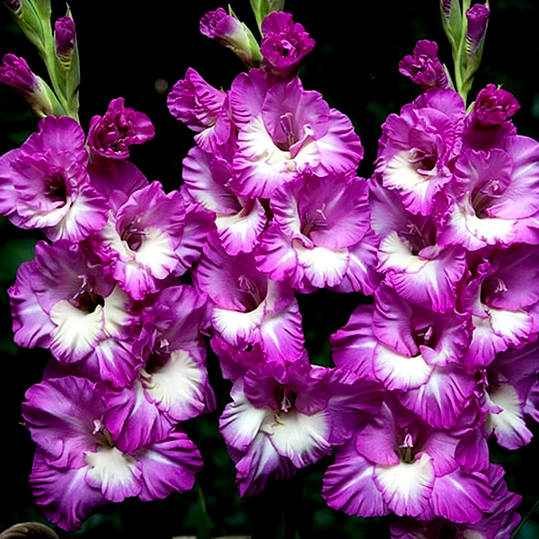 Gladiolus is a genus of perennial flowering plants that grow from corms (bulb-like underground storage organs) and are beloved for their tall, dramatic flower spikes. These striking plants produce sword-shaped leaves and towering stems that can reach 2-5 feet in height, topped with multiple funnel-shaped flowers arranged in dense, vertical clusters called racemes.