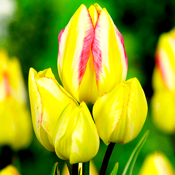 Tulips are iconic spring-blooming bulbs renowned for their elegant cup-shaped flowers and wide array of colors and forms. These bulbs produce single stems with distinctive flowers that can be found in virtually every color except true blue, including solid hues, bi-colors, and striking patterns with stripes, flames, or picotee edges.