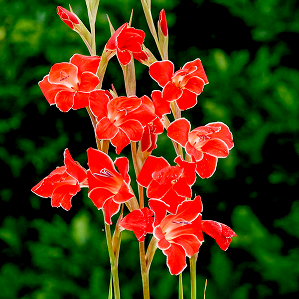 Gladiolus is a genus of perennial flowering plants that grow from corms (bulb-like underground storage organs) and are beloved for their tall, dramatic flower spikes. These striking plants produce sword-shaped leaves and towering stems that can reach 2-5 feet in height, topped with multiple funnel-shaped flowers arranged in dense, vertical clusters called racemes.