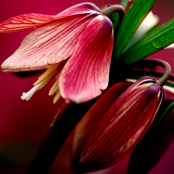 The flowers typically nod downward, hanging like lanterns from sturdy stems, and many species emit a subtle, sometimes musky fragrance. In gardens, fritillarias are prized for their unusual beauty and architectural form, though they can be challenging to grow as they often require specific soil conditions and may take several years to establish.