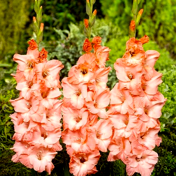 Native primarily to South Africa, with some species from the Mediterranean region, gladioli have become popular garden plants worldwide. They bloom in summer and are prized as cut flowers due to their impressive height and long-lasting blooms. The plants prefer full sun and well-drained soil, and in colder climates, the corms must be lifted and stored indoors during winter. Gladioli are excellent for creating dramatic vertical elements in flower gardens and are commonly grown in rows for cutting. There are over 260 species and countless cultivars, ranging from miniature varieties to giant exhibition types.
