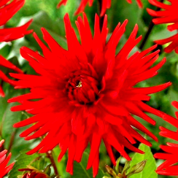 Dahlias grow from underground tubers and typically reach heights of 1-6 feet, depending on the variety. They bloom from midsummer until the first frost, making them valuable for extended garden color. The plants prefer full sun and well-drained, fertile soil. In colder climates, the tubers must be lifted and stored indoors during winter. Dahlias are excellent for cut flowers and are popular in both cottage gardens and formal landscapes. There are over 40 species and thousands of cultivars, making them one of the most diverse flowering plants available to gardeners.
