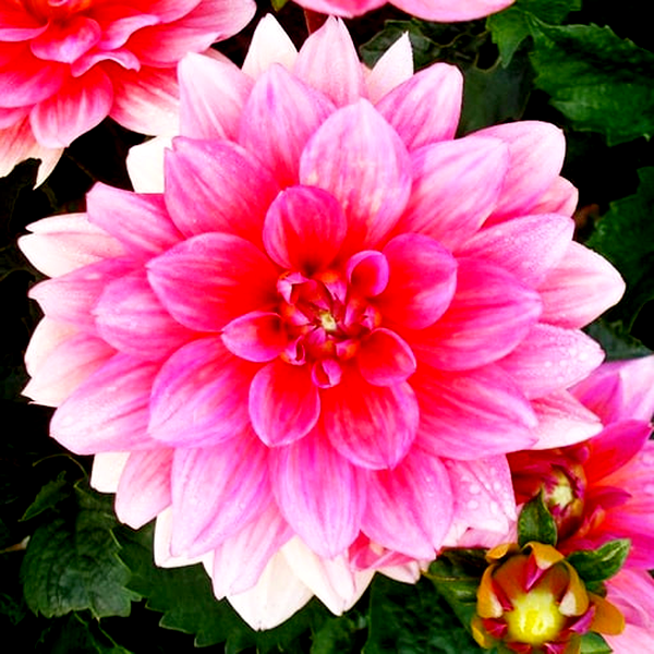 Dahlia is a genus of bushy, tuberous perennial plants native to Mexico and Central America. These popular garden flowers are prized for their spectacular blooms, which come in an extraordinary range of colors, sizes, and forms. Dahlia flowers can be as small as a coin or as large as dinner plates, with some varieties reaching over 12 inches across.