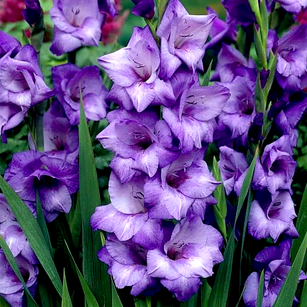 Native primarily to South Africa, with some species from the Mediterranean region, gladioli have become popular garden plants worldwide. They bloom in summer and are prized as cut flowers due to their impressive height and long-lasting blooms. The plants prefer full sun and well-drained soil, and in colder climates, the corms must be lifted and stored indoors during winter. Gladioli are excellent for creating dramatic vertical elements in flower gardens and are commonly grown in rows for cutting. There are over 260 species and countless cultivars, ranging from miniature varieties to giant exhibition types.