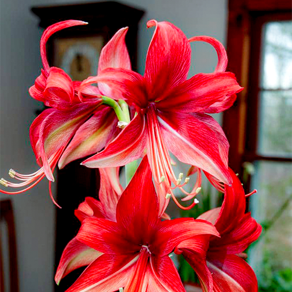 Native to South America, particularly the Andes mountains and Brazil, amaryllis has become a beloved houseplant worldwide. It's especially popular as a holiday gift because the bulbs can be timed to bloom indoors during winter. The plants prefer bright, indirect light and well-draining soil. After blooming, the bulb enters a dormant period and can be stored to reflower the following year. In warmer climates, some varieties can be grown outdoors year-round, where they may naturalize and form clumps over time.