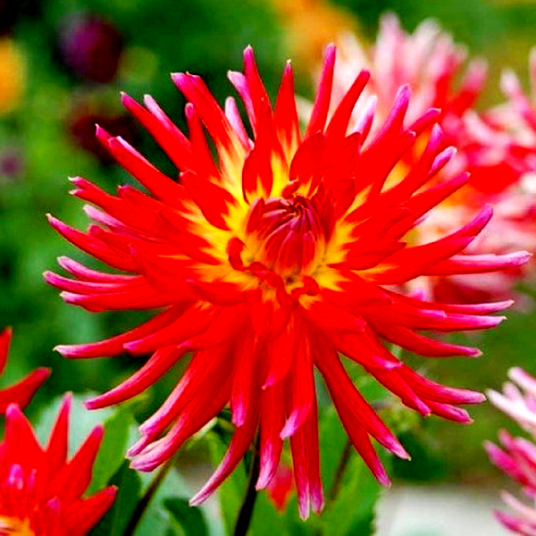 Dahlia is a genus of bushy, tuberous perennial plants native to Mexico and Central America. These popular garden flowers are prized for their spectacular blooms, which come in an extraordinary range of colors, sizes, and forms. Dahlia flowers can be as small as a coin or as large as dinner plates, with some varieties reaching over 12 inches across.