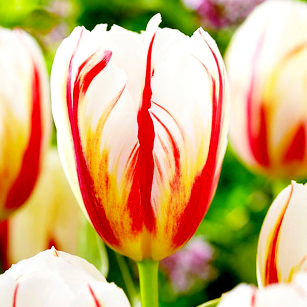 Tulips are iconic spring-blooming bulbs renowned for their elegant cup-shaped flowers and wide array of colors and forms. These bulbs produce single stems with distinctive flowers that can be found in virtually every color except true blue, including solid hues, bi-colors, and striking patterns with stripes, flames, or picotee edges.