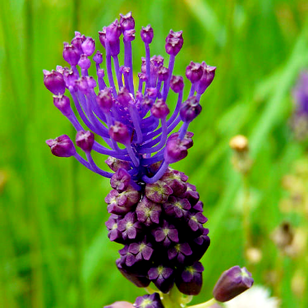 These charming spring flowers are native to the Mediterranean region and parts of Asia. They're characterized by their distinctive clusters of small, bell-shaped or urn-shaped flowers that resemble tiny grapes, hence the common name "grape hyacinth." The flowers typically come in shades of blue, purple, white, or yellow, and grow on short spikes above grass-like foliage.