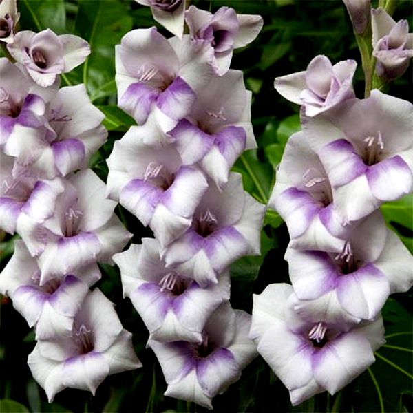 Native primarily to South Africa, with some species from the Mediterranean region, gladioli have become popular garden plants worldwide. They bloom in summer and are prized as cut flowers due to their impressive height and long-lasting blooms. The plants prefer full sun and well-drained soil, and in colder climates, the corms must be lifted and stored indoors during winter. Gladioli are excellent for creating dramatic vertical elements in flower gardens and are commonly grown in rows for cutting. There are over 260 species and countless cultivars, ranging from miniature varieties to giant exhibition types.
