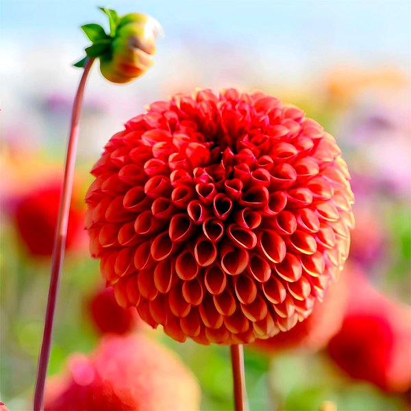 Dahlia is a genus of bushy, tuberous perennial plants native to Mexico and Central America. These popular garden flowers are prized for their spectacular blooms, which come in an extraordinary range of colors, sizes, and forms. Dahlia flowers can be as small as a coin or as large as dinner plates, with some varieties reaching over 12 inches across.