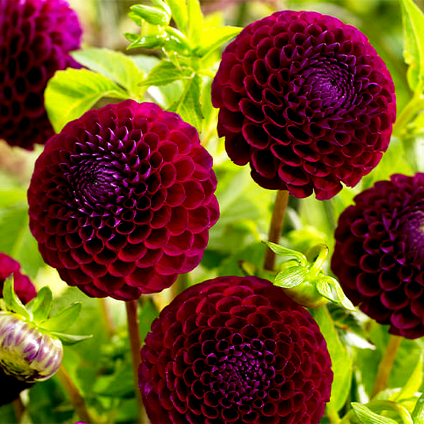 Dahlias grow from underground tubers and typically reach heights of 1-6 feet, depending on the variety. They bloom from midsummer until the first frost, making them valuable for extended garden color. The plants prefer full sun and well-drained, fertile soil. In colder climates, the tubers must be lifted and stored indoors during winter. Dahlias are excellent for cut flowers and are popular in both cottage gardens and formal landscapes. There are over 40 species and thousands of cultivars, making them one of the most diverse flowering plants available to gardeners.