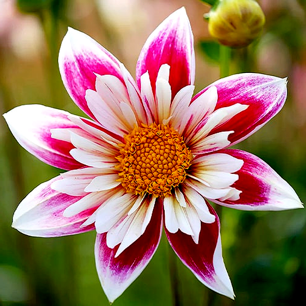 Dahlia is a genus of bushy, tuberous perennial plants native to Mexico and Central America. These popular garden flowers are prized for their spectacular blooms, which come in an extraordinary range of colors, sizes, and forms. Dahlia flowers can be as small as a coin or as large as dinner plates, with some varieties reaching over 12 inches across.