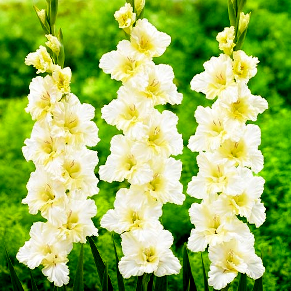 Native primarily to South Africa, with some species from the Mediterranean region, gladioli have become popular garden plants worldwide. They bloom in summer and are prized as cut flowers due to their impressive height and long-lasting blooms. The plants prefer full sun and well-drained soil, and in colder climates, the corms must be lifted and stored indoors during winter. Gladioli are excellent for creating dramatic vertical elements in flower gardens and are commonly grown in rows for cutting. There are over 260 species and countless cultivars, ranging from miniature varieties to giant exhibition types.
