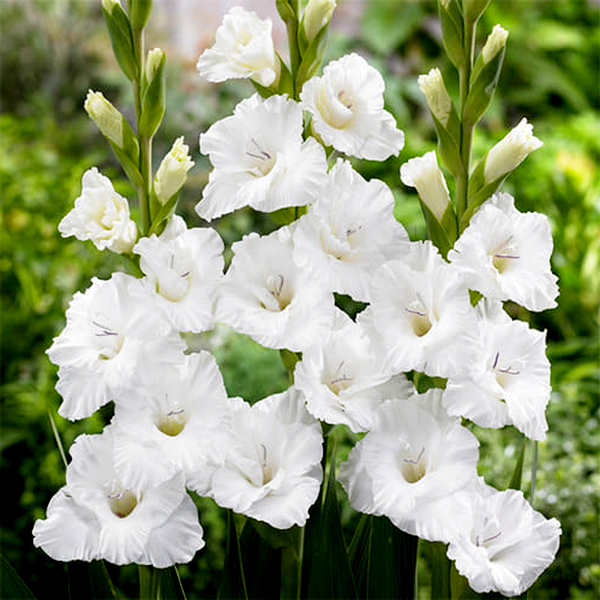 Native primarily to South Africa, with some species from the Mediterranean region, gladioli have become popular garden plants worldwide. They bloom in summer and are prized as cut flowers due to their impressive height and long-lasting blooms. The plants prefer full sun and well-drained soil, and in colder climates, the corms must be lifted and stored indoors during winter. Gladioli are excellent for creating dramatic vertical elements in flower gardens and are commonly grown in rows for cutting. There are over 260 species and countless cultivars, ranging from miniature varieties to giant exhibition types.