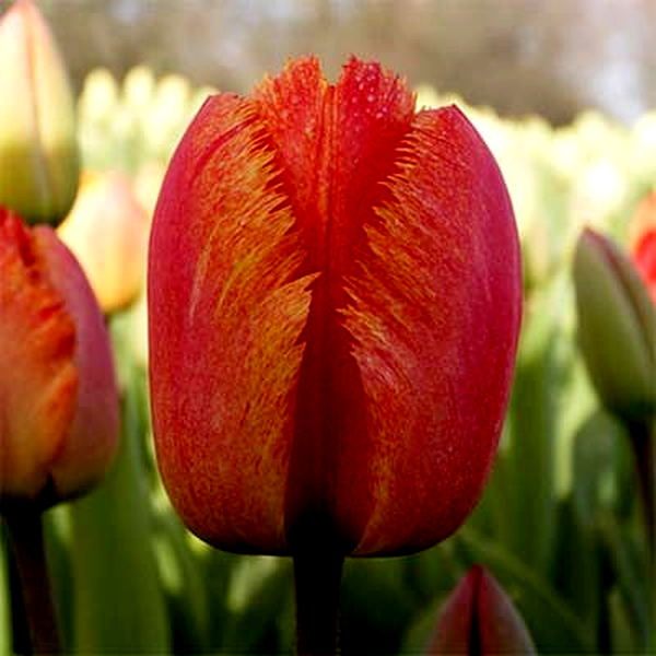 Tulip varieties range from early-blooming species tulips that stand just 4-6 inches tall to towering Darwin hybrids that can reach 24 inches. Popular types include classic single and double early tulips, fringed tulips with serrated petal edges, lily-flowered tulips with pointed petals, and parrot tulips with ruffled, twisted blooms.