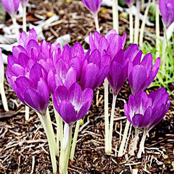In gardens, autumn crocuses are valued for providing unexpected color when most other flowers are fading. They naturalize well in grass or woodland settings and can create dramatic drifts of autumn blooms. The timing of their flowers - appearing when the garden seems to be going dormant - makes them a powerful symbol of surprise, resilience, and the unexpected beauty that can emerge in life's quieter moments.