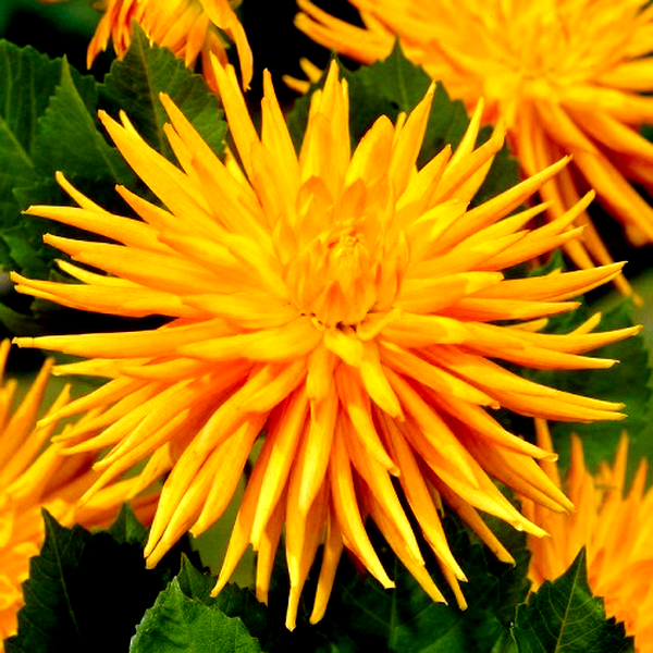 Dahlias grow from underground tubers and typically reach heights of 1-6 feet, depending on the variety. They bloom from midsummer until the first frost, making them valuable for extended garden color. The plants prefer full sun and well-drained, fertile soil. In colder climates, the tubers must be lifted and stored indoors during winter. Dahlias are excellent for cut flowers and are popular in both cottage gardens and formal landscapes. There are over 40 species and thousands of cultivars, making them one of the most diverse flowering plants available to gardeners.