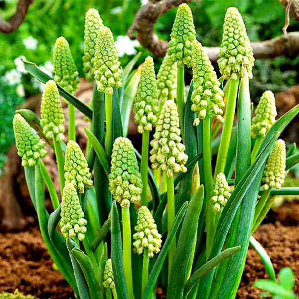 These charming spring flowers are native to the Mediterranean region and parts of Asia. They're characterized by their distinctive clusters of small, bell-shaped or urn-shaped flowers that resemble tiny grapes, hence the common name "grape hyacinth." The flowers typically come in shades of blue, purple, white, or yellow, and grow on short spikes above grass-like foliage.