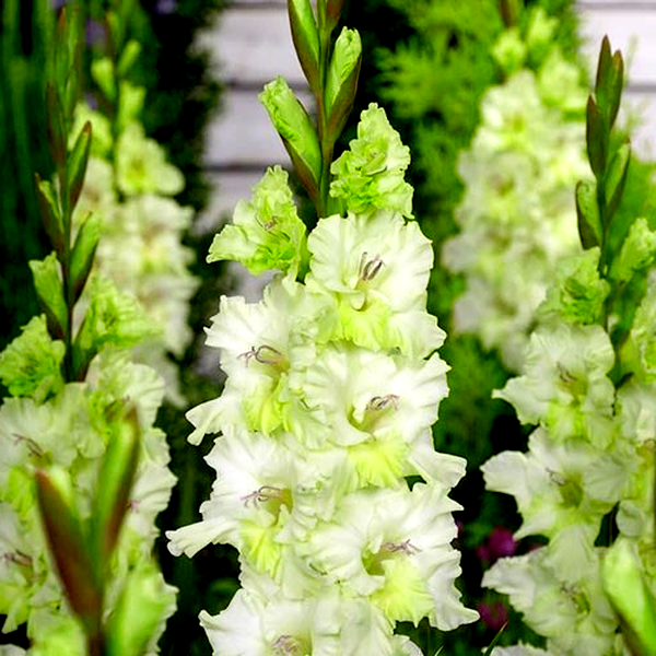 Native primarily to South Africa, with some species from the Mediterranean region, gladioli have become popular garden plants worldwide. They bloom in summer and are prized as cut flowers due to their impressive height and long-lasting blooms. The plants prefer full sun and well-drained soil, and in colder climates, the corms must be lifted and stored indoors during winter. Gladioli are excellent for creating dramatic vertical elements in flower gardens and are commonly grown in rows for cutting. There are over 260 species and countless cultivars, ranging from miniature varieties to giant exhibition types.
