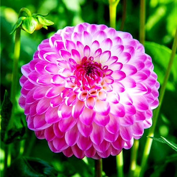 Dahlias grow from underground tubers and typically reach heights of 1-6 feet, depending on the variety. They bloom from midsummer until the first frost, making them valuable for extended garden color. The plants prefer full sun and well-drained, fertile soil. In colder climates, the tubers must be lifted and stored indoors during winter. Dahlias are excellent for cut flowers and are popular in both cottage gardens and formal landscapes. There are over 40 species and thousands of cultivars, making them one of the most diverse flowering plants available to gardeners.