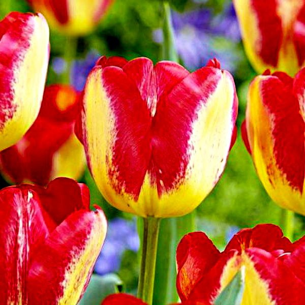 Tulips are iconic spring-blooming bulbs renowned for their elegant cup-shaped flowers and wide array of colors and forms. These bulbs produce single stems with distinctive flowers that can be found in virtually every color except true blue, including solid hues, bi-colors, and striking patterns with stripes, flames, or picotee edges.