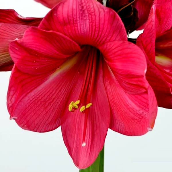Amaryllis is a striking bulbous flowering plant best known for its large, trumpet-shaped blooms that make it a popular choice for indoor flowering during winter months. The most commonly cultivated species, Hippeastrum (often called amaryllis in horticulture), produces dramatic flowers that can reach 6-8 inches across, typically in shades of red, pink, white, orange, or striped combinations.