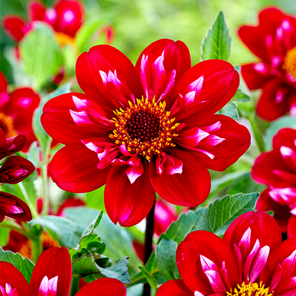 Dahlia is a genus of bushy, tuberous perennial plants native to Mexico and Central America. These popular garden flowers are prized for their spectacular blooms, which come in an extraordinary range of colors, sizes, and forms. Dahlia flowers can be as small as a coin or as large as dinner plates, with some varieties reaching over 12 inches across.