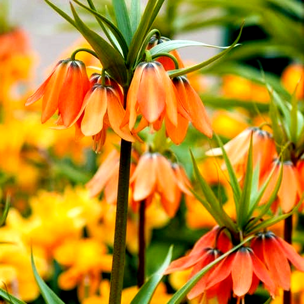 These spring-blooming flowers are native to temperate regions across the Northern Hemisphere, with species found in Europe, Asia, and western North America. Fritillarias vary greatly in size and appearance - from the towering Crown Imperial (Fritillaria imperialis) with its dramatic orange or yellow flowers topped by a crown of leaves, to the delicate Snake's Head Fritillary (Fritillaria meleagris) with its purple and white checkered petals.