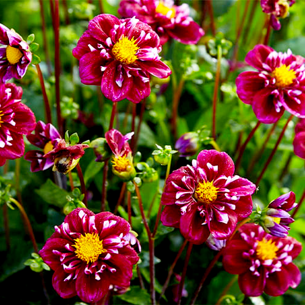 Dahlia is a genus of bushy, tuberous perennial plants native to Mexico and Central America. These popular garden flowers are prized for their spectacular blooms, which come in an extraordinary range of colors, sizes, and forms. Dahlia flowers can be as small as a coin or as large as dinner plates, with some varieties reaching over 12 inches across.