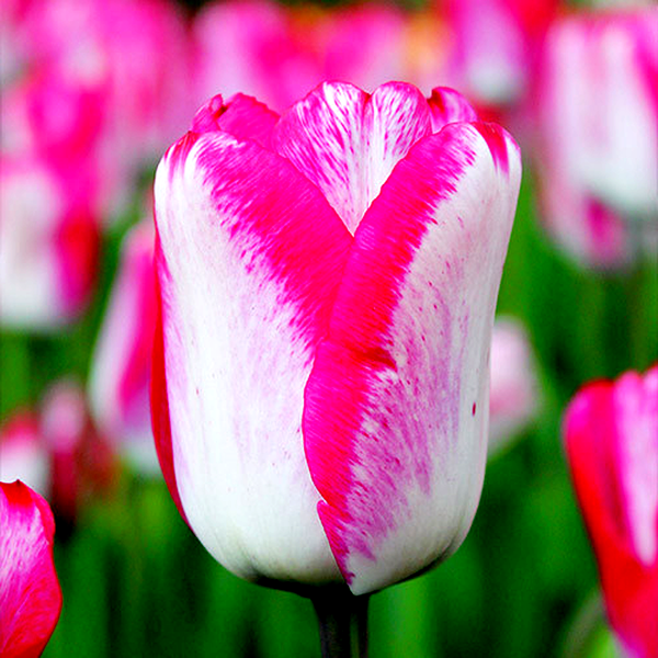 Tulips are iconic spring-blooming bulbs renowned for their elegant cup-shaped flowers and wide array of colors and forms. These bulbs produce single stems with distinctive flowers that can be found in virtually every color except true blue, including solid hues, bi-colors, and striking patterns with stripes, flames, or picotee edges.
