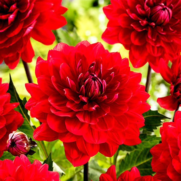 Dahlia is a genus of bushy, tuberous perennial plants native to Mexico and Central America. These popular garden flowers are prized for their spectacular blooms, which come in an extraordinary range of colors, sizes, and forms. Dahlia flowers can be as small as a coin or as large as dinner plates, with some varieties reaching over 12 inches across.