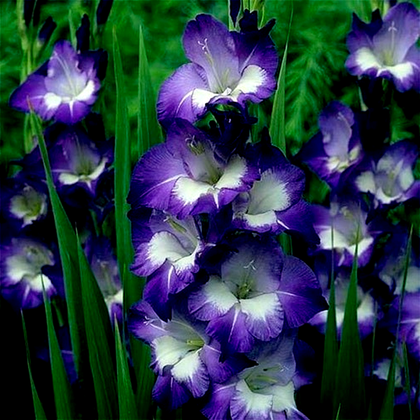 Native primarily to South Africa, with some species from the Mediterranean region, gladioli have become popular garden plants worldwide. They bloom in summer and are prized as cut flowers due to their impressive height and long-lasting blooms. The plants prefer full sun and well-drained soil, and in colder climates, the corms must be lifted and stored indoors during winter. Gladioli are excellent for creating dramatic vertical elements in flower gardens and are commonly grown in rows for cutting. There are over 260 species and countless cultivars, ranging from miniature varieties to giant exhibition types.