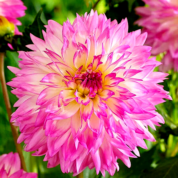 Dahlia is a genus of bushy, tuberous perennial plants native to Mexico and Central America. These popular garden flowers are prized for their spectacular blooms, which come in an extraordinary range of colors, sizes, and forms. Dahlia flowers can be as small as a coin or as large as dinner plates, with some varieties reaching over 12 inches across.