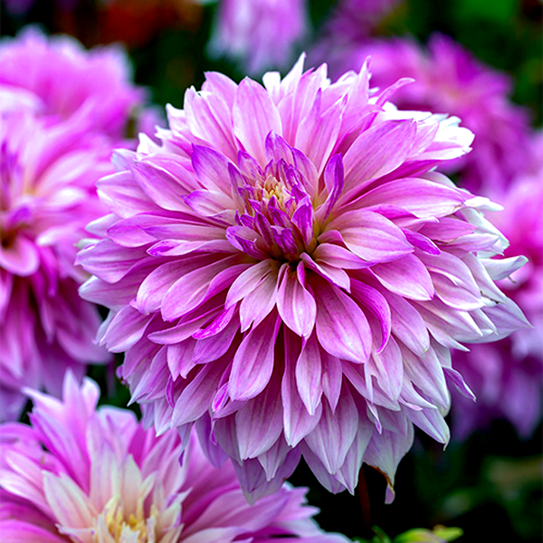 Dahlia is a genus of bushy, tuberous perennial plants native to Mexico and Central America. These popular garden flowers are prized for their spectacular blooms, which come in an extraordinary range of colors, sizes, and forms. Dahlia flowers can be as small as a coin or as large as dinner plates, with some varieties reaching over 12 inches across.