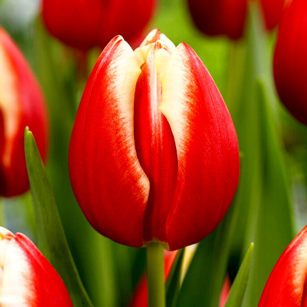 Tulips are iconic spring-blooming bulbs renowned for their elegant cup-shaped flowers and wide array of colors and forms. These bulbs produce single stems with distinctive flowers that can be found in virtually every color except true blue, including solid hues, bi-colors, and striking patterns with stripes, flames, or picotee edges.