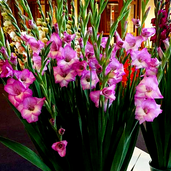 Native primarily to South Africa, with some species from the Mediterranean region, gladioli have become popular garden plants worldwide. They bloom in summer and are prized as cut flowers due to their impressive height and long-lasting blooms. The plants prefer full sun and well-drained soil, and in colder climates, the corms must be lifted and stored indoors during winter. Gladioli are excellent for creating dramatic vertical elements in flower gardens and are commonly grown in rows for cutting. There are over 260 species and countless cultivars, ranging from miniature varieties to giant exhibition types.