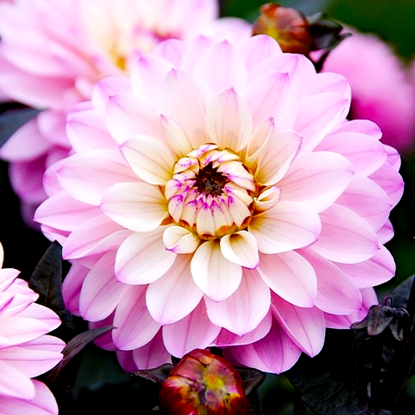 Dahlia is a genus of bushy, tuberous perennial plants native to Mexico and Central America. These popular garden flowers are prized for their spectacular blooms, which come in an extraordinary range of colors, sizes, and forms. Dahlia flowers can be as small as a coin or as large as dinner plates, with some varieties reaching over 12 inches across.