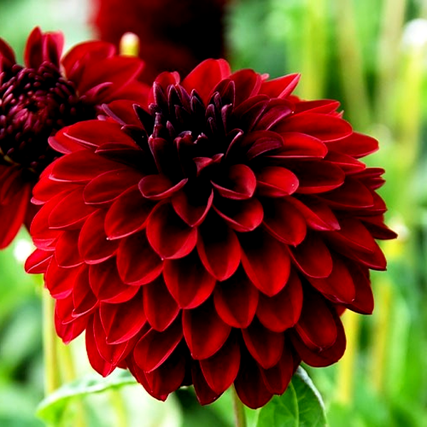 Dahlias grow from underground tubers and typically reach heights of 1-6 feet, depending on the variety. They bloom from midsummer until the first frost, making them valuable for extended garden color. The plants prefer full sun and well-drained, fertile soil. In colder climates, the tubers must be lifted and stored indoors during winter. Dahlias are excellent for cut flowers and are popular in both cottage gardens and formal landscapes. There are over 40 species and thousands of cultivars, making them one of the most diverse flowering plants available to gardeners.