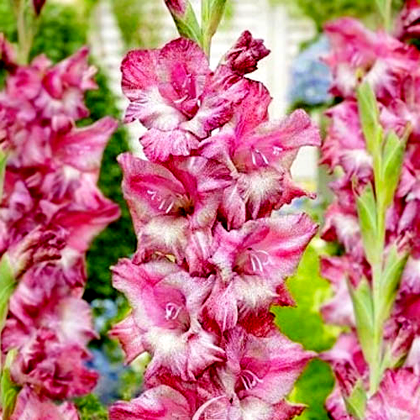 Native primarily to South Africa, with some species from the Mediterranean region, gladioli have become popular garden plants worldwide. They bloom in summer and are prized as cut flowers due to their impressive height and long-lasting blooms. The plants prefer full sun and well-drained soil, and in colder climates, the corms must be lifted and stored indoors during winter. Gladioli are excellent for creating dramatic vertical elements in flower gardens and are commonly grown in rows for cutting. There are over 260 species and countless cultivars, ranging from miniature varieties to giant exhibition types.