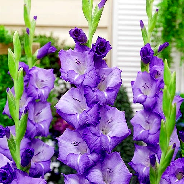 Native primarily to South Africa, with some species from the Mediterranean region, gladioli have become popular garden plants worldwide. They bloom in summer and are prized as cut flowers due to their impressive height and long-lasting blooms. The plants prefer full sun and well-drained soil, and in colder climates, the corms must be lifted and stored indoors during winter. Gladioli are excellent for creating dramatic vertical elements in flower gardens and are commonly grown in rows for cutting. There are over 260 species and countless cultivars, ranging from miniature varieties to giant exhibition types.