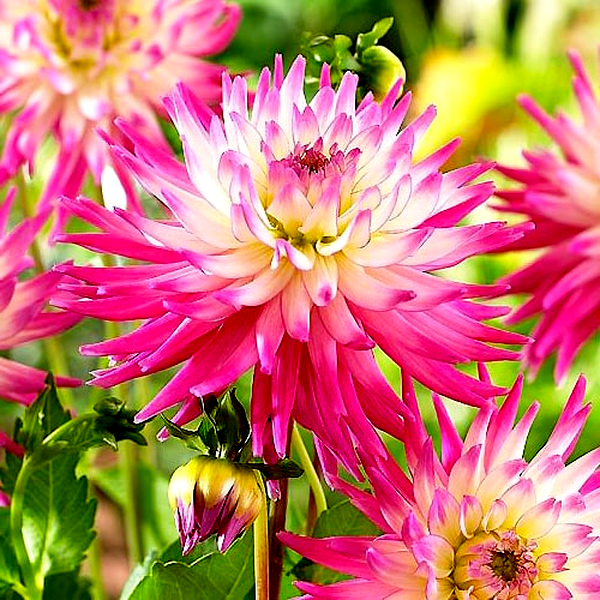 Dahlia is a genus of bushy, tuberous perennial plants native to Mexico and Central America. These popular garden flowers are prized for their spectacular blooms, which come in an extraordinary range of colors, sizes, and forms. Dahlia flowers can be as small as a coin or as large as dinner plates, with some varieties reaching over 12 inches across.