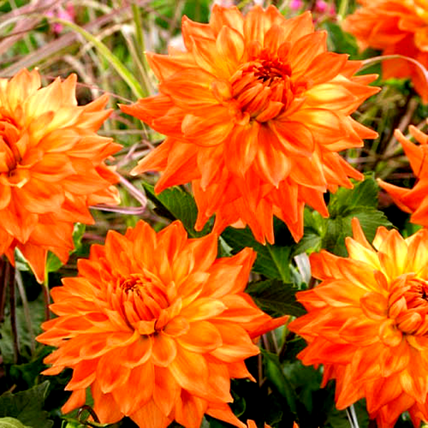 Dahlias grow from underground tubers and typically reach heights of 1-6 feet, depending on the variety. They bloom from midsummer until the first frost, making them valuable for extended garden color. The plants prefer full sun and well-drained, fertile soil. In colder climates, the tubers must be lifted and stored indoors during winter. Dahlias are excellent for cut flowers and are popular in both cottage gardens and formal landscapes. There are over 40 species and thousands of cultivars, making them one of the most diverse flowering plants available to gardeners.