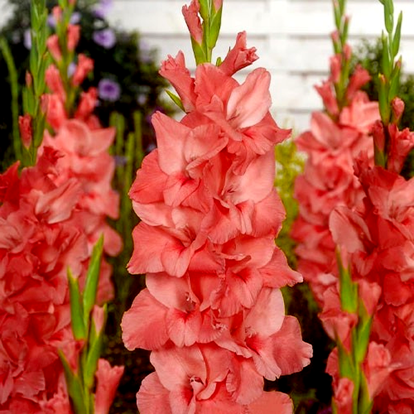 Native primarily to South Africa, with some species from the Mediterranean region, gladioli have become popular garden plants worldwide. They bloom in summer and are prized as cut flowers due to their impressive height and long-lasting blooms. The plants prefer full sun and well-drained soil, and in colder climates, the corms must be lifted and stored indoors during winter. Gladioli are excellent for creating dramatic vertical elements in flower gardens and are commonly grown in rows for cutting. There are over 260 species and countless cultivars, ranging from miniature varieties to giant exhibition types.