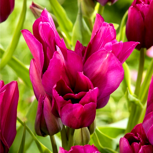Tulips are iconic spring-blooming bulbs renowned for their elegant cup-shaped flowers and wide array of colors and forms. These bulbs produce single stems with distinctive flowers that can be found in virtually every color except true blue, including solid hues, bi-colors, and striking patterns with stripes, flames, or picotee edges.
