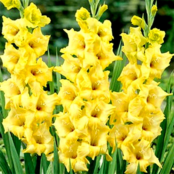 Gladiolus is a genus of perennial flowering plants that grow from corms (bulb-like underground storage organs) and are beloved for their tall, dramatic flower spikes. These striking plants produce sword-shaped leaves and towering stems that can reach 2-5 feet in height, topped with multiple funnel-shaped flowers arranged in dense, vertical clusters called racemes.