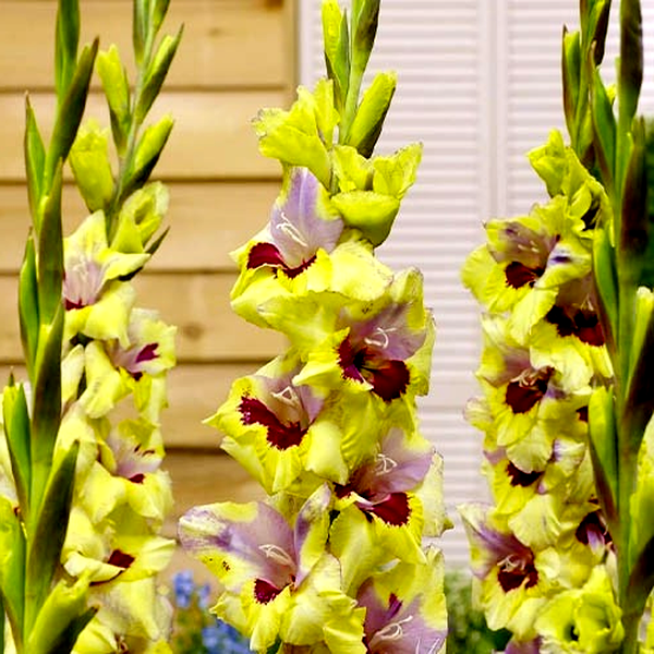 Native primarily to South Africa, with some species from the Mediterranean region, gladioli have become popular garden plants worldwide. They bloom in summer and are prized as cut flowers due to their impressive height and long-lasting blooms. The plants prefer full sun and well-drained soil, and in colder climates, the corms must be lifted and stored indoors during winter. Gladioli are excellent for creating dramatic vertical elements in flower gardens and are commonly grown in rows for cutting. There are over 260 species and countless cultivars, ranging from miniature varieties to giant exhibition types.