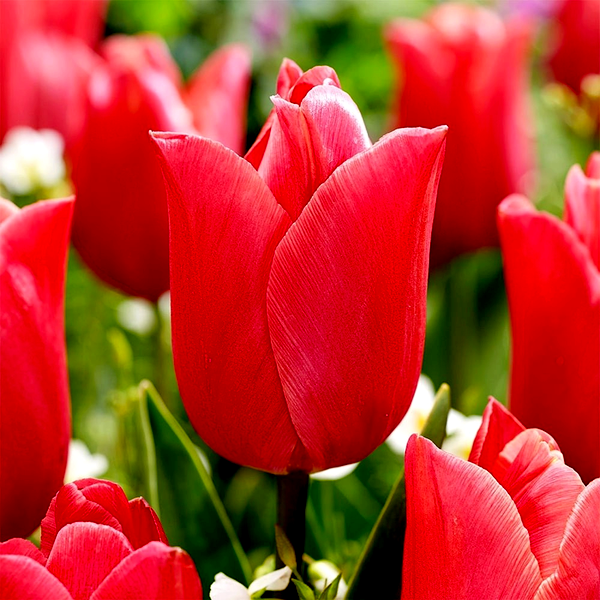 Tulips are iconic spring-blooming bulbs renowned for their elegant cup-shaped flowers and wide array of colors and forms. These bulbs produce single stems with distinctive flowers that can be found in virtually every color except true blue, including solid hues, bi-colors, and striking patterns with stripes, flames, or picotee edges.